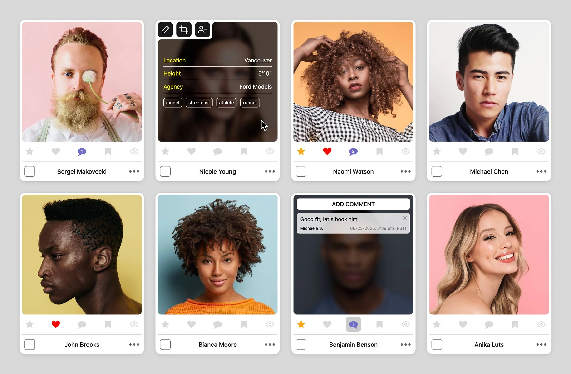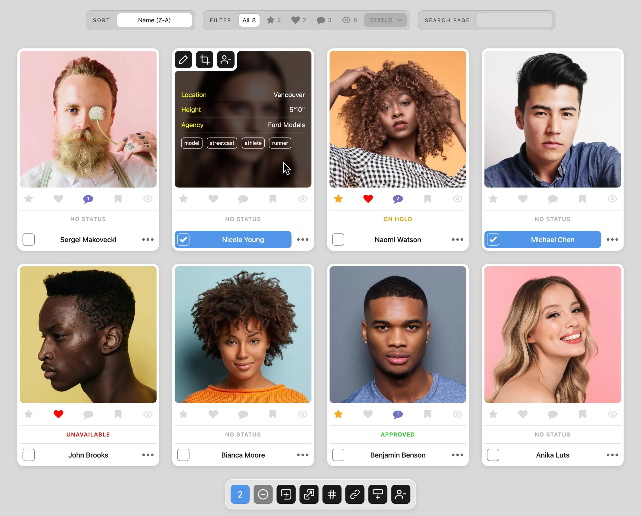 Manage photos for all talent profiles in a given casting from a single page.